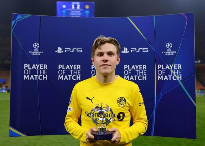 欧冠淘汰赛附加赛次回合,博德闪耀客场2-1击败国米,海于格传射建功,当选全场最佳球员。